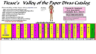 Tiease's designer Paper Divas are waiting you to garbed them in various formal, exotic & casual outfits. Each Divas has her personalized treasure trove of slacks, dresses, skirts, gowns, kimonos, floral and a surprising assemble of costumes and designs which will astound you. Original one of kind creations, Modern sensations, traditional separates, since each one are Tiease's Paper Divas are handcrafted all clothes for each doll is hand tailored to suit her. Some of Tiease's Paper Divas have their own bridal wear. From modern formal robes, to Lovely, authentic creations-All will delight Paper doll admires.collectors, Fashionistas, and aspiring designers. Each Paper Diva is sold separately via one of Tiease's Paper Diva Deluxe Box Sets, which include: Laminated exotic Paper Diva, convenient storage sachet`, colossal wardrobe, accessories, wigs, shoes, and an attractive stands created exclusively by Tiease for her designer Paper Divas collection edition.